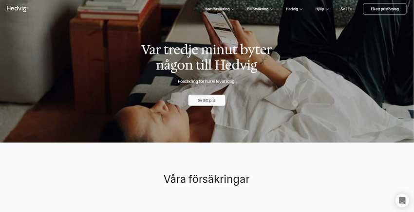 Hedvig är en av de nyare aktörerna på den svenska försäkringsmarknaden och erbjuder ett digitaliserat och anpassningsbart hemförsäkringspaket för alla som bor i Sverige.